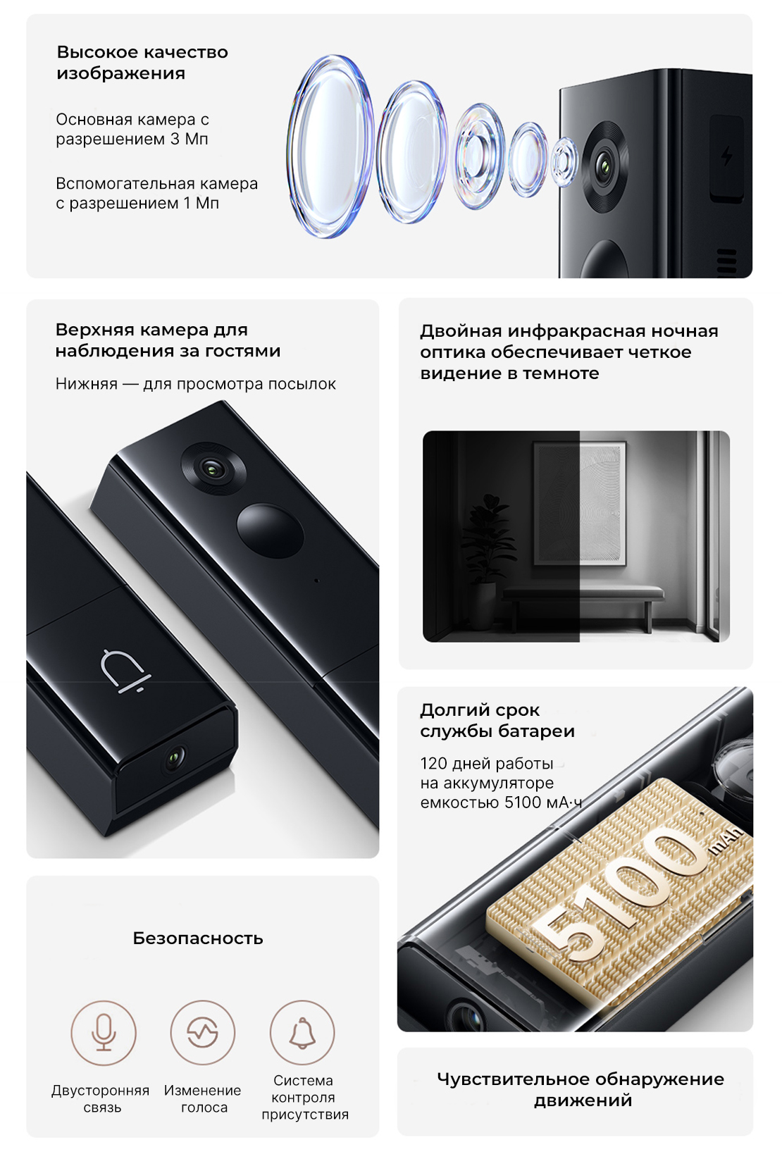 Модель позволяет через приложение MiHome видеть посетителей и общаться с ними, даже когда вас нет дома. Система поддерживает автоматические ответы и сохранение часто используемых фраз для быстрого общения.