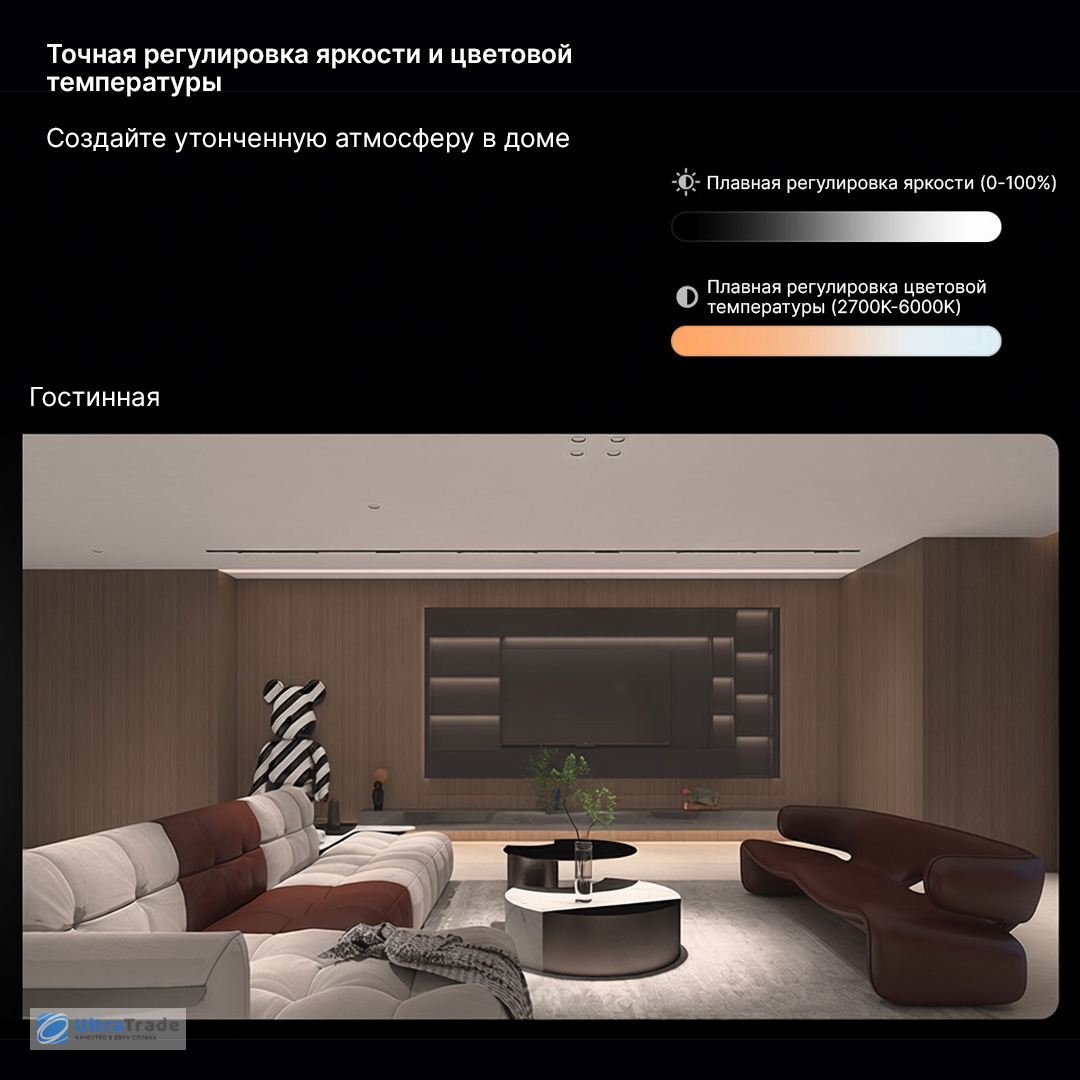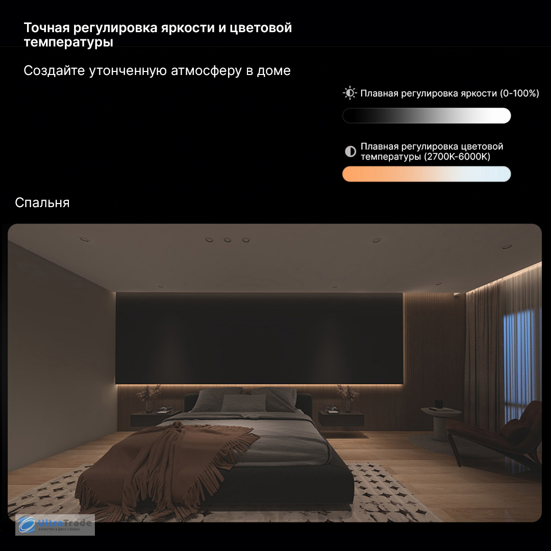 Все модули поддерживают плавное диммирование (0–100%) и регулировку цветовой температуры от 2700K (тёплый) до 6000K (холодный). |