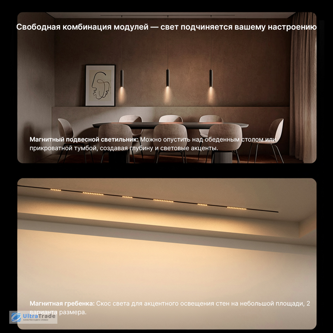 Гибкая система для любого интерьера Трековая система Linptech L1 состоит из магнитного трека и сменных модулей, которые легко комбинировать: