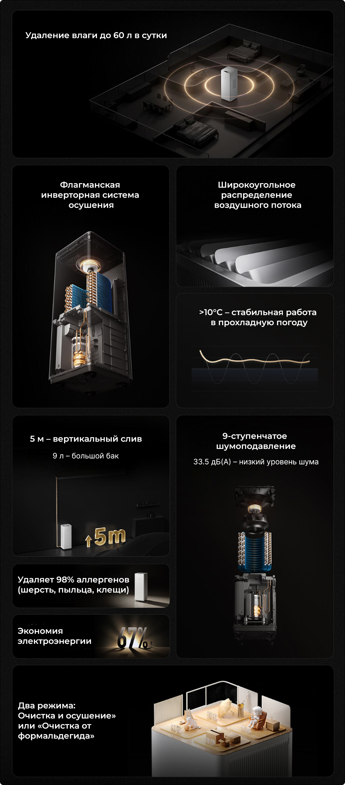 Умный осушитель воздуха Xiaomi Mijia Inverter Purification Dehumidifier Max (VD60J-VA5A)