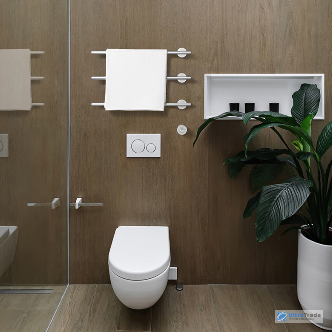 Полотенцесушитель оснащен инновационным бесшовным дисплеем, который органично вписан в корпус. На дисплее отображаются режим сушки, обратный отсчёт, 24-часовой таймер и настройки.