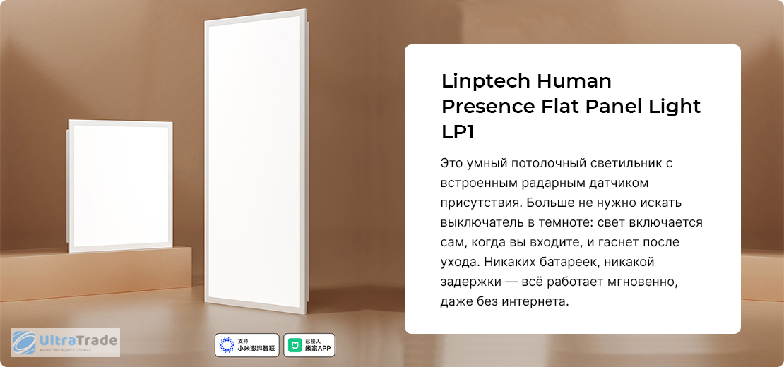 Умный потолочный светильник с датчиком присутствия Xiaomi Xiaomi Linptech Human Body Presence Panel Light 300х600mm 24W (LP1-C-3060)