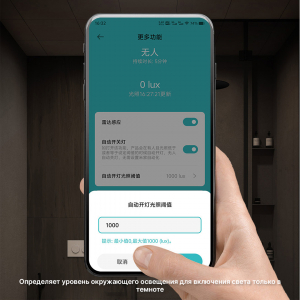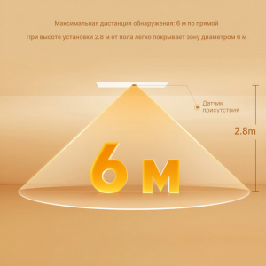 Дальность обнаружения При установке на высоте 2.8 м от пола светильник покрывает круг диаметром до 6 м. Даже неподвижного человека (например, принимающего душ или читающего) радар определяет по дыханию. Дальность и зоны обнаружения можно настроить в приложении под вашу планировку. ![]() |