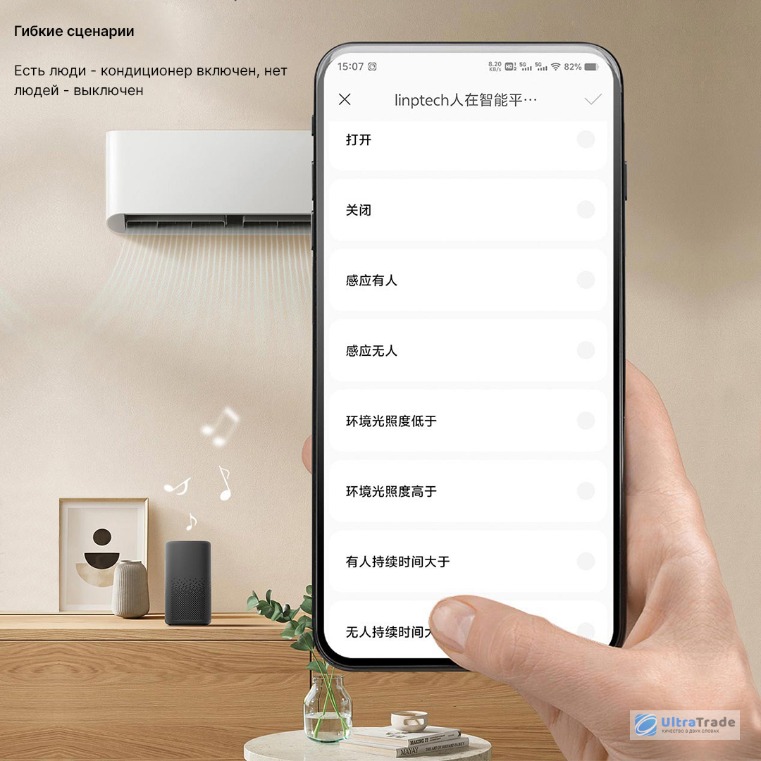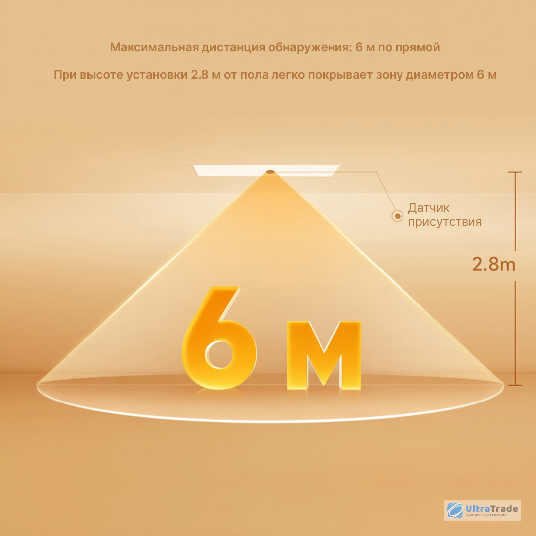 Дальность обнаружения При установке на высоте 2.8 м от пола светильник покрывает круг диаметром до 6 м. Даже неподвижного человека (например, принимающего душ или читающего) радар определяет по дыханию. Дальность и зоны обнаружения можно настроить в приложении под вашу планировку. ![]() |