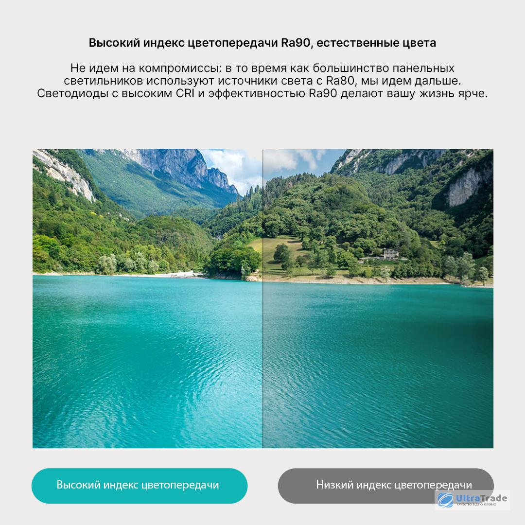![]() Индекс цветопередачи Ra90 Светодиоды с CRI 90 точно передают цвета кожи, продуктов, одежды и интерьеров — в отличие от большинства панелей с Ra80. Цветовая температура 6000K (холодный белый) подходит для рабочих зон и санузлов. |