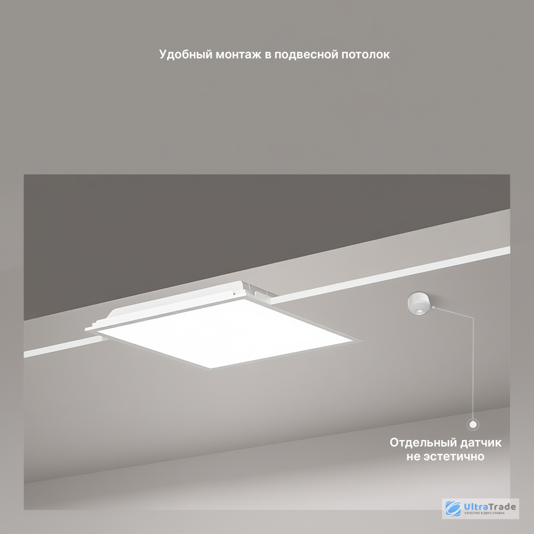 Два устройства в одном — идеально ровно и невидимо Забудьте о внешних датчиках, которые портят интерьер и выступают из потолка. В LP1 датчик присутствия полностью встроен в корпус светильника — никаких проводов, батареек или лишних деталей. Это не просто удобно, а эстетично: абсолютно плоская поверхность органично вписывается в любой подвесной потолок. Вы получаете полную функциональность «умного присутствия» без компромиссов в дизайне и без необходимости обслуживать отдельное устройство. |