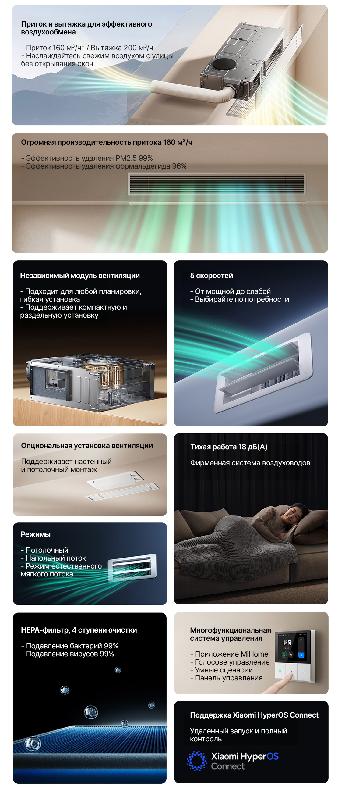 • Совместимость: работает с канальными и мульти-сплит системами Xiaomi (требуется OTA-обновление кондиционера, начиная с июня 2025 г.).