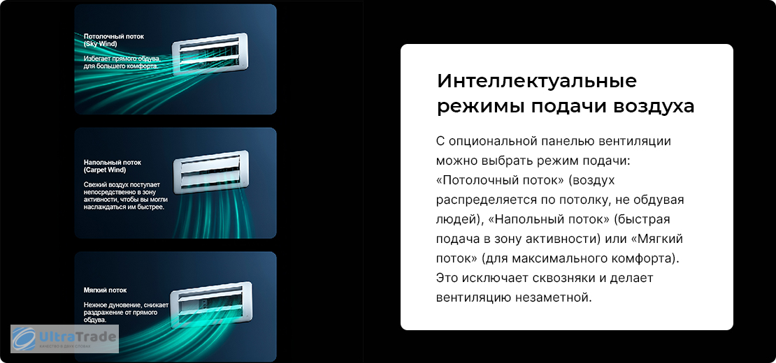 • Гибкая установка: можно монтировать в едином блоке с кондиционером (экономия места, эстетика) или отдельно — в зависимости от планировки и требований.