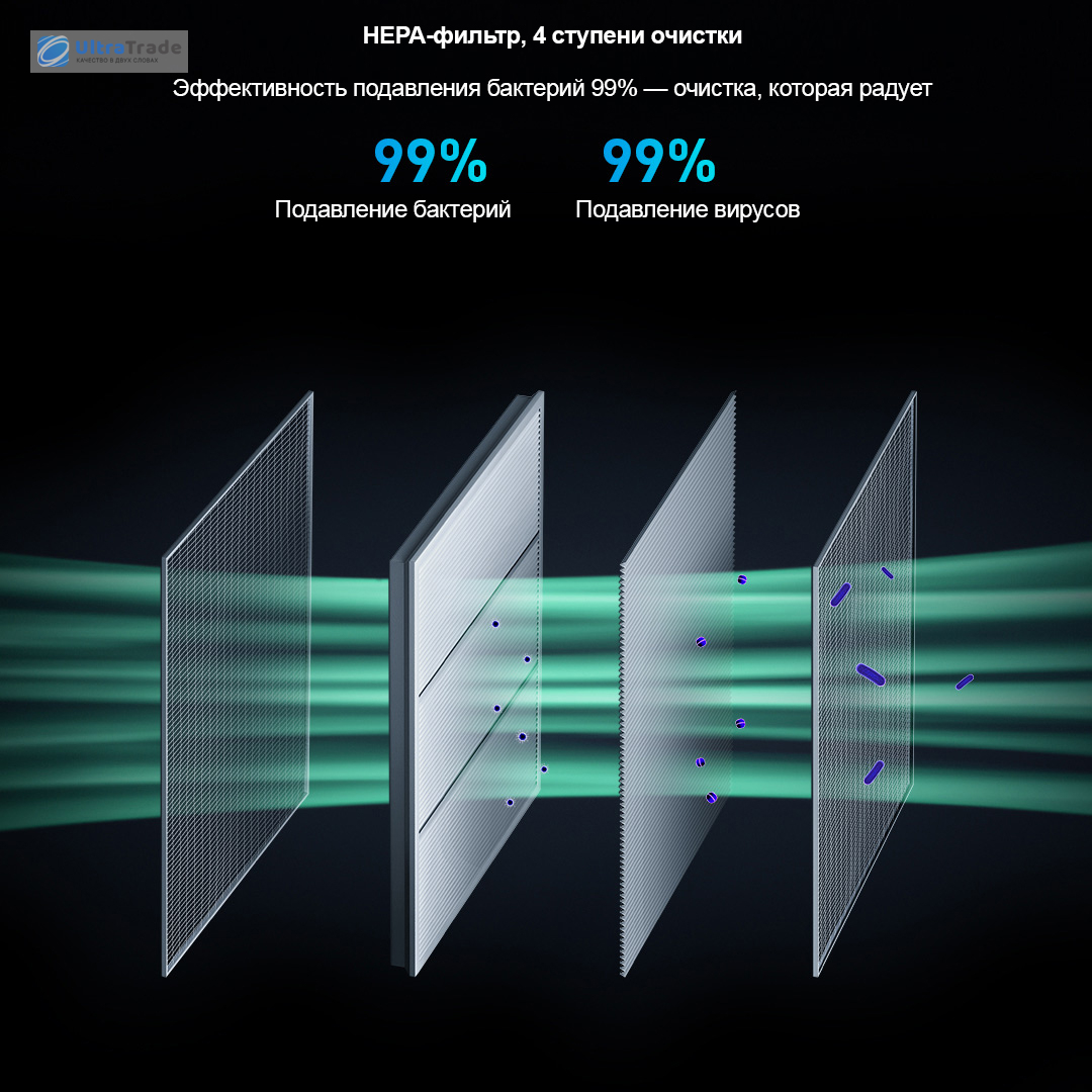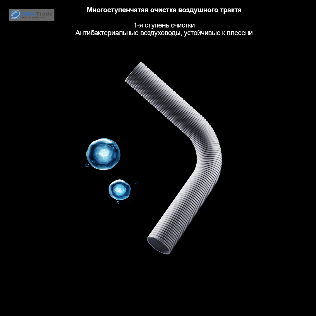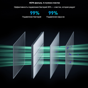 • 4-х ступенчатая система: от антибактериальных воздуховодов до HEPA-фильтра H13.