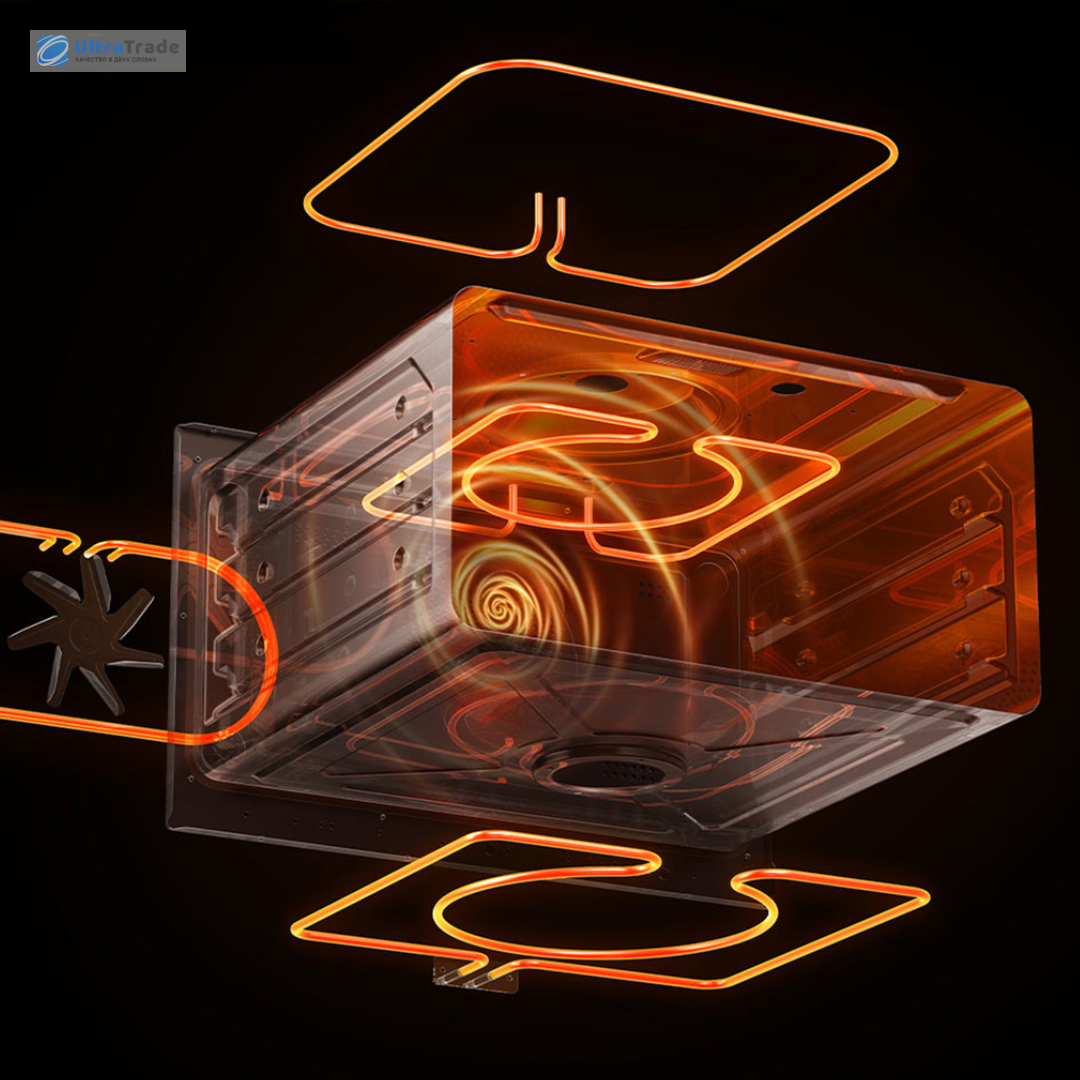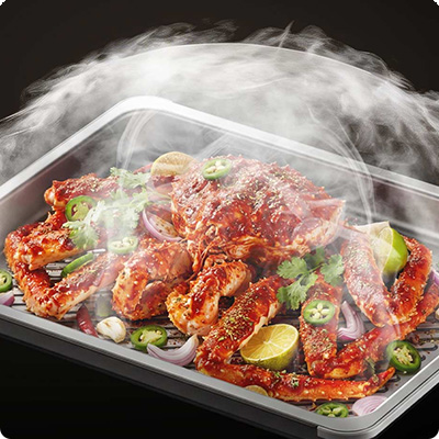 Аэрогриль и томление Функция аэрогриля создаёт хрустящую текстуру без масла благодаря потоку горячего воздуха со скоростью 2000 об/мин и объёмному циркуляционному теплу. Технология медленного томления с точным контролем температуры сохраняет питательные вещества. ![]() |