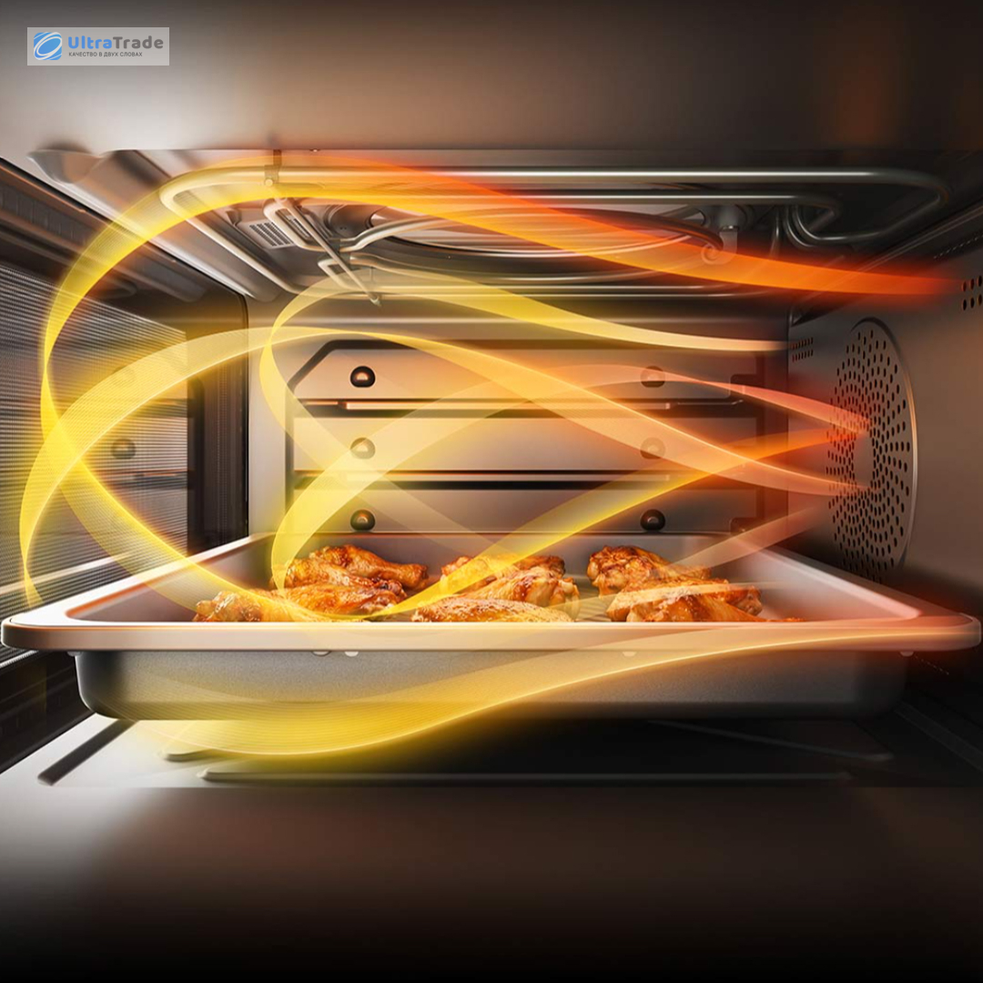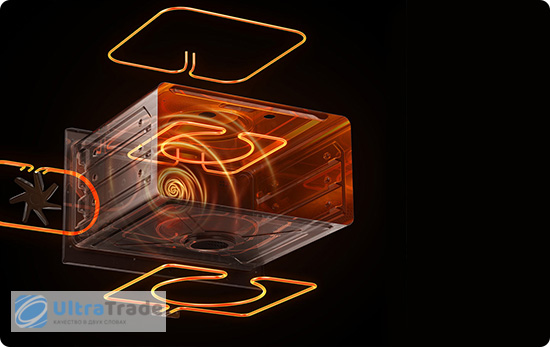 Четыре нагревательных элемента В этой модели используется четыре нагревательных элемента в сочетании с конвекцией горячего воздуха. Это создаёт объёмное тепловое поле, которое окружает продукты со всех сторон. Благодаря такой конструкции выпечка пропекается равномерно. Дополнительно предусмотрена независимая регулировка температуры верхнего и нижнего нагрева. Это позволяет точно настраивать режим под конкретное блюдо. |