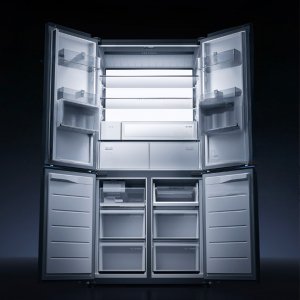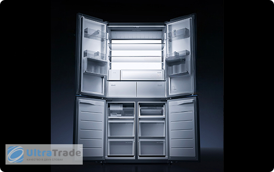 Внутреннее пространство разделено на 18 независимых зон, включая специальные изолированные отсеки для напитков и косметики, а также отдельный лоток для замороженных пельменей.