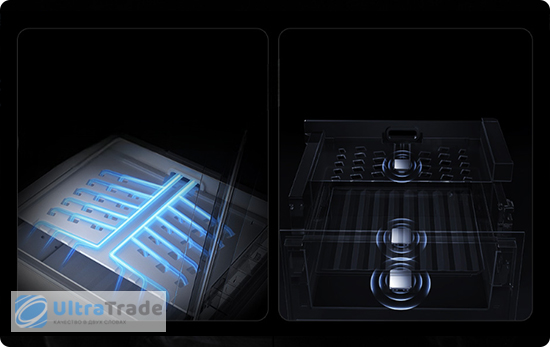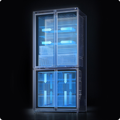 Кольцевая система циркуляции воздуха и 17 пар выходных отверстий над ящиком обеспечивают равномерную подачу холода. Три сверхчувствительных датчика температуры отслеживают продукт и воздух в реальном времени — колебания температуры составляют всего ±0,1°C.