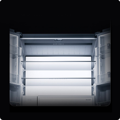 Внутреннее пространство освещает панорамная LED-подсветка на задней стенке, которая включается плавно в течение 3 секунд, чтобы не раздражать глаза ярким светом. Это обеспечивает отличный обзор продуктов даже в полной темноте, создавая дополнительный комфорт при использовании.