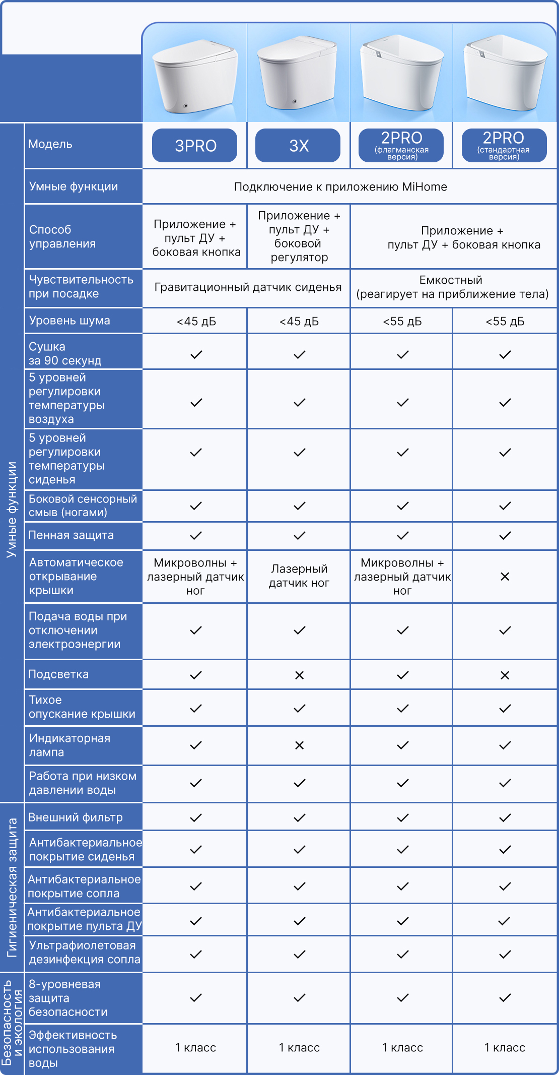 Экология и экономия Smartmi 2Pro соответствует высшему классу энергоэффективности и водопотребления (1-й уровень). В режиме ожидания устройство потребляет всего 1 кВт•ч в месяц, что значительно экономичнее обычных моделей. ![]()  |